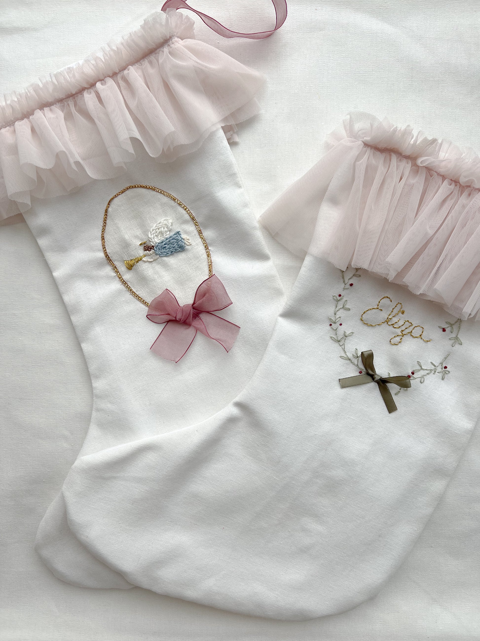 Each stocking is finished with exquisite hand-embroidered personalisation, these stockings are made to be treasured. Whether it’s a child’s first Christmas or a thoughtful gift for a loved one, each stocking is hand stitched with love, creating a truly unique keepsake to bring out year after year